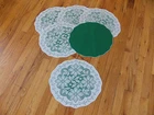 I PURCHASE MY LACE DIRECTLY FROM THE FACTORY, THESE MAY BE CONSIDERED SECONDS HERITAGE LACE GREEN AND WHITE SET 6 CHRISTMAS POINSETTIA PLACEMATS 15 BY 13 INCHES NEW WITHOUT TAGS I CHECK MY LACE FOR FLAWS, IF I NOTICE A FLAW I NOTE IT HERE IN THE DESCRIPTION, IF I MISS A FLAW IT IS NOT INTENTIONAL PLEASE MAKE SURE OF YOUR SIZE AND COLOR PRIOR TO PURCHASE AS I DO NOT ACCEPT RETURNS I TRY TO GET THE MEASUREMENTS WITHIN A ½ INCH PLEASE MAKE SURE YOU KNOW YOUR MEASUREMENT PRIOR TO PURCHASE ALL PHOTOGRAPHS ARE OF THE ORIGINAL ITEM UNLESS OTHERWISE STATED. The item(s) in this ad have been described to the best of my ability. If you have any questions feel free to ask, I will try my best to give you an answer. Ebay strives to maintain a safe and secure buying atmosphere, and I try also to give the best service. 5 star feedback is very important, if you have a problem with your item please give me the opportunity to correct the situation before leaving neutral or negative feedback. I will leave good feedback for you, and hopefully you are satisfied and will do the same. Thank you for your business, without you I wouldn’t be successful. Placing a bid on my items constitutes an agreement that you are accepting the item as described. Payment must be received within 3 days of auction close. Payment by Pay Pal accepted. I usually ship within 1 business day of receiving cleared payment International buyers will pay actual full shipping fees.