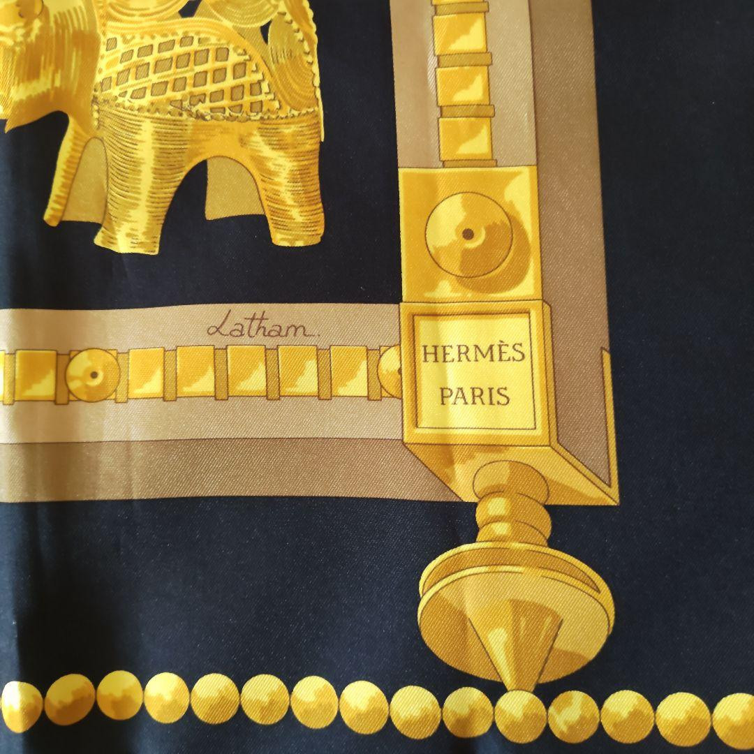 $ 396.0HERMÈS Lor Des Chefs 90 Black Gold Silk Scarf Women France 116075