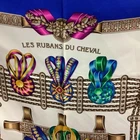 Absolutely stunning Hermès scarf! The "Les Rubans du Cheval" design in blue is elegant and timeless. The silk feels luxurious, and the craftsmanship is impeccable. Even with minor wear, it’s a gorgeous piece that adds sophistication to any outfit. Shipping from Japan was smooth, and the seller was responsive. A must-have for any Hermès lover!