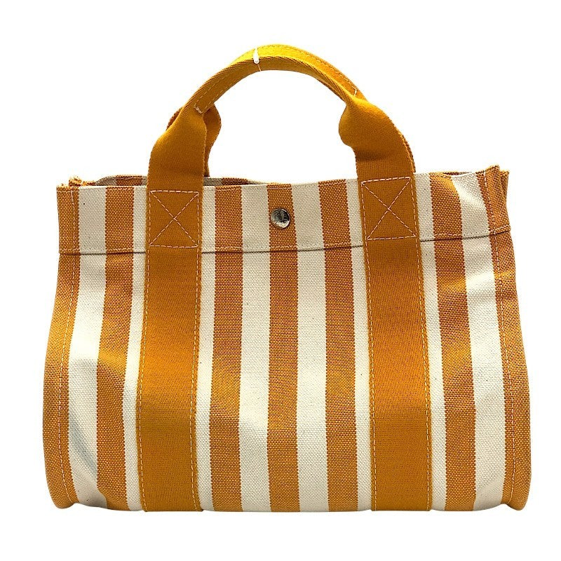 HERMES Cannes PM 100% Cotton Women's Tote Bag #Ok2558 HERMES Cannes PM 100% Cotton Women's Tote Bag #Ok2558 ---Description--- Condition : USED - Condition (Machine translation) - There is a stain on the bottom, dirt on the bottom stitching, and scratches on the metal fittings. Item rank: A N New item S Items that are like new but have some scratches, stains, etc. due to display. A Good condition with some signs of use and scratches. B Products with scratches, stains, etc. that have been used on a daily basis C Products with overall damage, scratches, stains, etc. that are noticeable. Size: W: 33.5cm H: 14cm D: 18cm Material: 100% cotton Accessories: Pouch, our store sales certificate [The items in the accessories column and shown in the image are all accessories] Please check items photo about condition. This is a machine translation, so feel free to ask questions if you do not understand. ---Shipping & Payment--- The shipping method is DHL or FedEx or UPS. We take a maximum of 5 business days for handling time. We do not accept cancellations after an order has been placed. ---International Buyers - Please Note:--- Import duties, taxes, and charges are not included in the item price or shipping cost. These charges are the buyer's responsibility. Please check with your country's customs office to determine what these additional costs will be prior to bidding or buying. We do not accept cancellations after an order has been placed due to system reasons. We are officially registered as legal business in Japan police. Public Safety Committees Number is 431280053434.