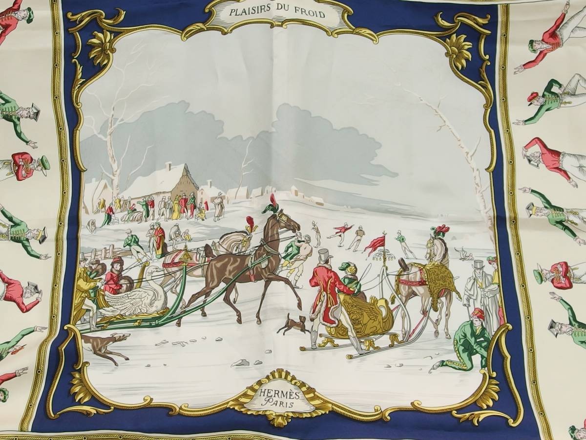 This Hermès Carré 90 Joy on Ice silk scarf is absolutely stunning! The vibrant blue shade and intricate design make it a timeless accessory. The silk feels luxurious and drapes beautifully. Perfect for adding elegance to any outfit. A must-have for any fashion lover!