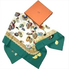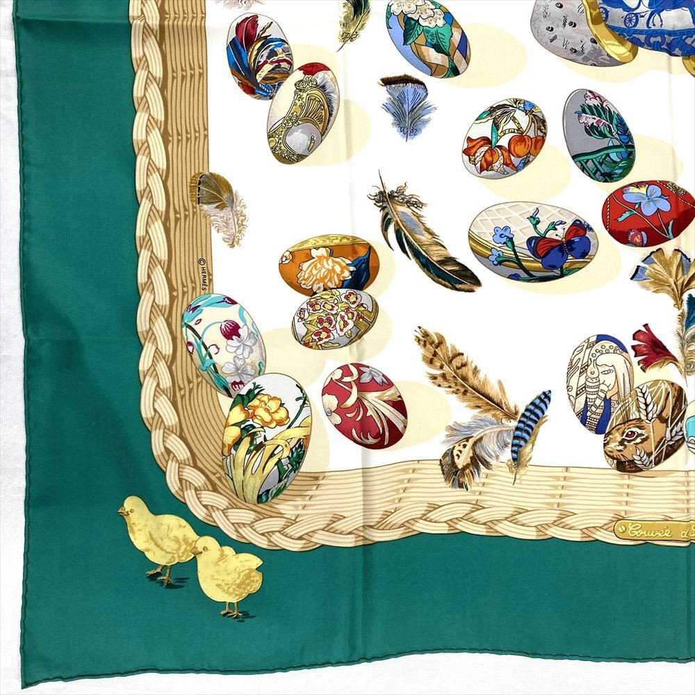 $ 143.92HERMES Caraibes Caribbean Bird Large Scarf Stole Logo Floral Beige