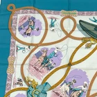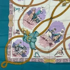 Absolutely stunning Hermès scarf! The vibrant blue "Charreada" design is eye-catching, and the silk feels luxurious. Lightweight yet substantial, it drapes beautifully and adds instant elegance to any outfit. The condition is excellent for a pre-loved piece—just minor signs of wear. Perfect size for versatile styling. A timeless addition to any collection!