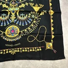 Absolutely stunning Hermès scarf! The "Parures des Sables" design in black is timeless and elegant. The silk feels luxurious, and despite minor wear, it’s in fantastic condition—barely noticeable. The craftsmanship is impeccable, and the size is perfect for styling. Shipping from Japan was smooth, and the seller provided excellent communication. A must-have for any Hermès lover—worth every penny!