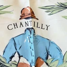 Year of Production: See Description Type: Handkerchief or Scarf Color: Ivory with multicolor accents MPN: Does not apply Brand: Hermes Included Items: Original Hermes box gtin13: Does not apply Department: Women Features: Horse racing motif Battery: See Description Model: Carré 90 Chantilly UPC: Does not apply Material: Silk Seller Notes: “Pre-owned” Size: 35.04 inch x 35.04 inch