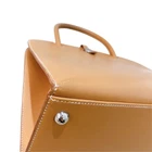 This Hermès Dalvi MM bag is a stunning piece with a natural vache leather finish. Despite some wear on the handles, corners, and hardware, it remains elegant and functional. The interior is clean, and the overall condition is great for a pre-loved luxury item. Perfect for those who appreciate timeless style with a bit of character!