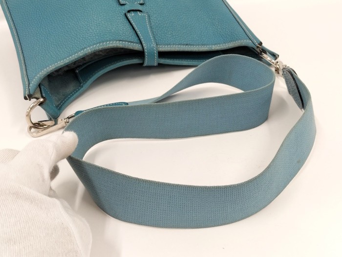 Hermes Mangeoire PM Bucket Bag in Blue Jean Clemence Leather