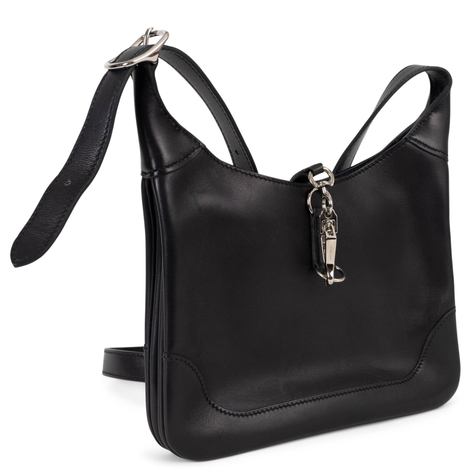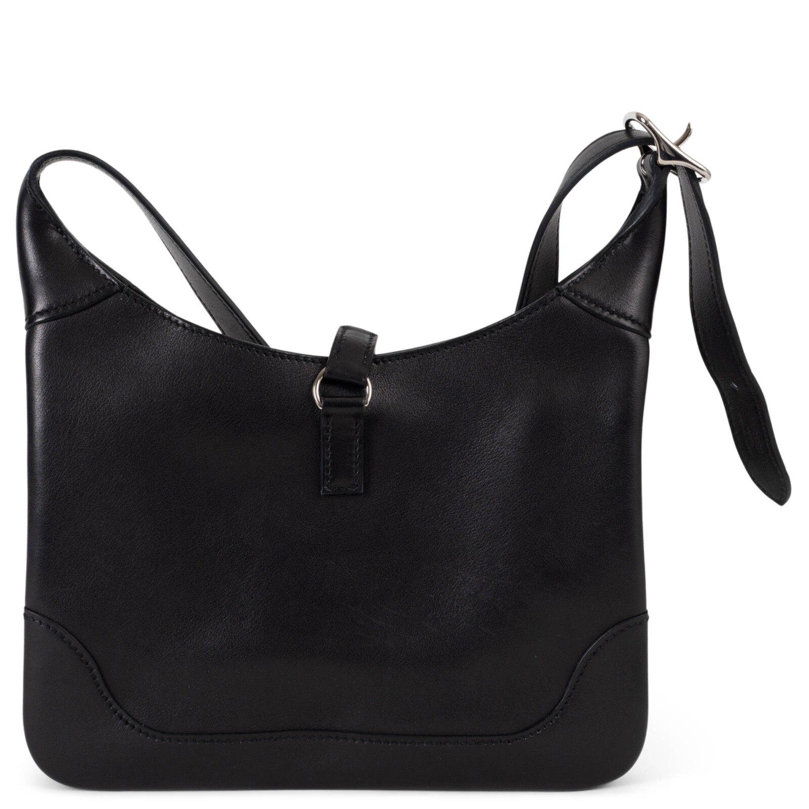 Welcome to LUX l Authentic Designer Consignment Rämistrasse 25, 8001 Zürich, Switzerland I Tue-Fri 11-18:30 & Sat 11-16:00 By bidding on our auctions you are agreeing to our Terms and Conditions below. All items come with authenticity guarantee! ------------------------------------------------------------------------------------------------------------------------------------------ Product Description: This 100% authentic Hermès Trim Duo 24 crossbody bag in black Veau Evercolor leather exemplifies refined everyday elegance. Featuring palladium hardware, it is designed with an adjustable strap and a signature dog-hook closure offering two positioning options. The leather-lined interior is thoughtfully organized with a central zipper pocket that divides the space into two compartments, providing both structure and functionality. A sophisticated and versatile piece, perfect for effortless day-to-night transitions. Has been carried and shows some scratches and press marks allover. Comes with dust bag. Measurements Model H079217CK 89 Height 16.6cm (6.5in) Width 24cm (9.4in) Depth 3cm (1.2in) Shoulder Strap Length 106cm (41.3in) Hardware Palladium All our listings include only the listed item unless otherwise specified in the description above - Price does not include import duties & taxes - check your countries import laws prior purchase ------------------------------------------------------------------------------------------------------------------------------------------ Terms & Conditions Luxury-Shops is not affiliated with any of the name-brand items we offer for sale. Warranties and Liabilites: Luxury-Shops declines all responsibility and cannot be held liable for any damages caused by the use of a specific garment. We also cannot be held responsible for the quality of an item (we are not the manufacturer) or any damages resulting from a manufacturing defect. No warranties of any kind are given or implied. Condition of Merchandise: Luxury-Shops offers for sale luxury top-quality products. We fully disclose the condition of each item. In the description of each product, Luxury-Shops will specify the conditions if different from the standards set by the market (Required disclosure of prior use) The main characteristics of products are shown in great detail (through numerous photographs and in-depth descriptions). The products offered for sale MAY NOT correspond to the real garments in terms of image and color because of the Internet Browser or Monitor used (color calibration). Luxury-Shops disclaims all responsibility. Every used item offered by Luxury-Shops has been cleaned and restored to the best possible condition unless noted otherwise. Every used or vintage handbag has been polished and refinished. Your purchases will be sent to you ready to be used or worn. Please be aware that vintage items may be delicate and may not be as resilient as a brand-new item. Please take appropriate care when using a vintage item. Damage to items after receipt or use by customers is not the responsibility of Luxury-Shops. Luxury-Shops is a reseller of authentic designer and vintage merchandise. We are not an authorised dealer and are not affiliated with the brands we sell on our site. Store-new designer items are only available from an authorised dealer or the actual store. Once the item leaves the authorised dealer with a customer, the item is considered pre-owned. However, items can be pre-owned and in new condition - that is, never used by the owner. Below are the definitions of the descriptions we use. NEW : in new condition, that is, never used . This means the item may have been purchased by us from an authorized dealer or a store. New items may also be pre-owned, that is, purchased by one of our consignors and never used. These items may have minor signs of handling as would any item available at an authorized dealer or boutique given that customers would reasonably handle an item when trying it on or examining it for purchase. USED: the item has been carried or worn and may be in any of the conditions described below. PRISTINE/VIRTUALLY NEW : Appears to have been used only a handful of time and is nearly new in condition. May have very slight signs of having been used upon close inspection. EXCELLENT : Used and in top condition. There may be faint signs of wear, slight scratches, marks or nicks which are not particularly noticeable and will not affect the use or wear of the item. Our descriptions and photographs will clearly indicate the condition of the item. GOOD : Used, may be an older or well-loved item. There may be slightly more noticeable signs of wear, scratches or marks. These will not affect the wear or use of the item. Our descriptions and photographs will clearly indicate the condition of the item. VINTAGE : Typically around 20 to just under 100 years old. Our vintage items are carefully examined and selected. Most are gently or rarely used, meticulously stored or cared for and will come to you in a perfectly usable condition. However, these are unique items which may be of a finer and more delicate nature than brand-new items so please be sensitive to this and have reasonable expectations of their resilience. We do not make allowances for unreasonable expectations in the condition of our items. Product Descriptions: We make every effort to display the products featured on our web site as accurately as possible, using a large array of unaltered digital photographs and detailed descriptions. Our examination and assessment of merchandise is meticulous and conducted with great attention to detail. Our expertise and product knowledge comes from many years of experience with authentic designer and vintage items. We make as much effort as is humanly possible to disclose all relevant information required for you to be completely confident about your purchase. However, the display and colour capabilities of your computer monitor could affect the colours you see on the screen and these ma