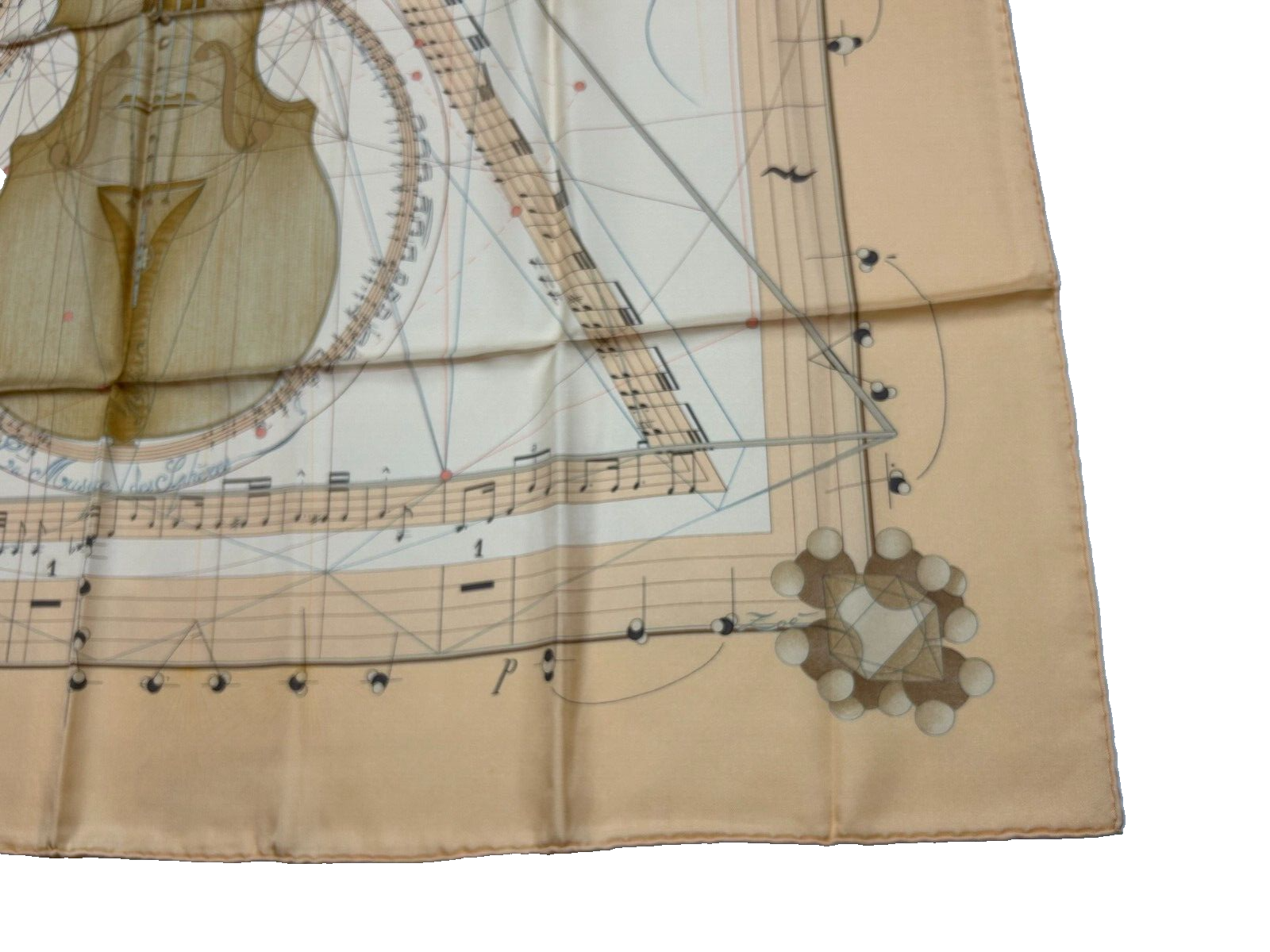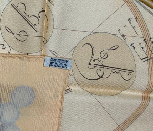 Authentic Hermes Scarf Title: La Musique des Spheres Artist: Zoé Pauwels Beige/Light pastel orange Color way New, unused. Boutique fresh scarf in immaculate condition. 100% Silk 90cm Made in France