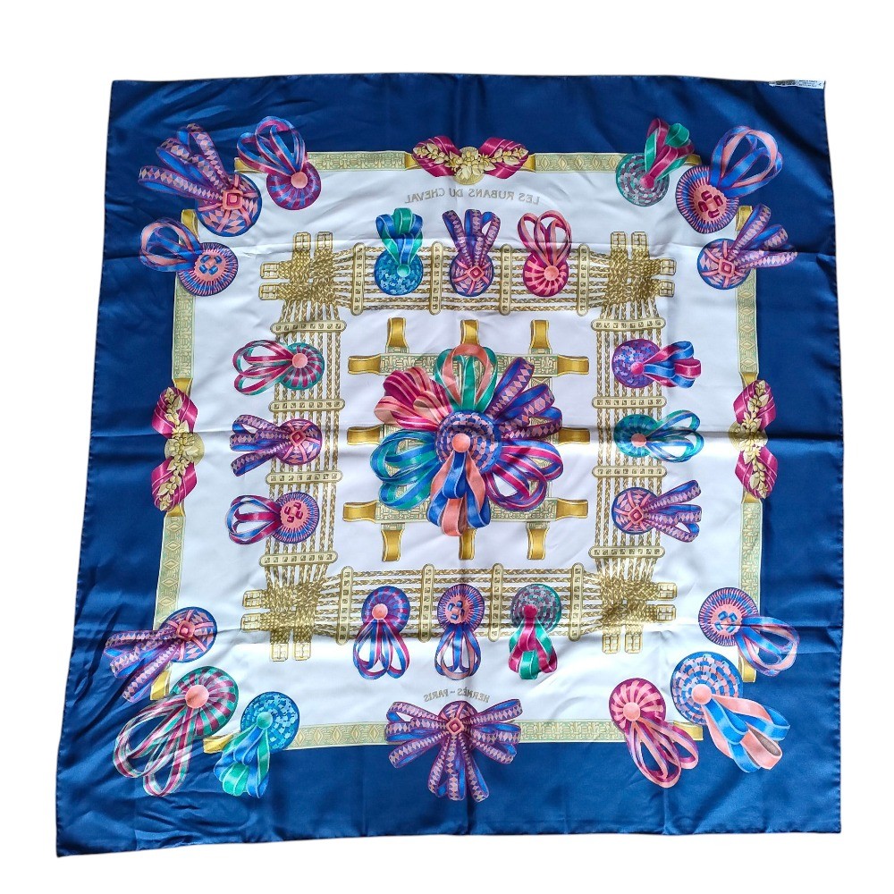 HERMES LES RUBANS DU CHEVAL Carre 90 Bandana Scarf Navy Multicolor Women USED Description / Specification Brand Name HERMES Item Name HERMES LES RUBANS DU CHEVAL Carre 90 Bandana Scarf Navy Multicolor Women USED Gender Women Color Border: Navy Overall color: Multicolor Material See photo ActualSize Length:91cm(35.8”) Width:87.5cm(34.4”) Accessories box Condition Although there is some wear, the item is in relatively good condition with no noticeable stains or damage. This is an item that you will be able to use for a long time to come. Instore Code 342127022012 Condition Rank Brand Description HERMES is a luxury brand from France founded in 1837. It began as a saddlery workshop, and functional and beautiful masterpieces were created using the outstanding skills of its craftsmen and the finest materials. Our shop offers a carefully selected selection of second-hand HERMES items that are attractive for their high-quality materials and sophisticated designs. You can purchase them at prices that are only available at second-hand stores. Please read before order ■About Customs ・Import duties, taxes, and charges are not included in the item price or shipping cost.These charges are the buyer’s responsibility. ・Please check with your country’s customs office to determine what these additional costs will be prior to bidding or buying. ・We are not acceptable for false declaration of prices and any other falsified information. ■Please pardon us if some items are sold out ・We sell on multiple venues such as eBay, and our website stores. ・As a result, orders will be fulfilled on a first-come first-served basis. ・We apologize for the inconvenience and we thank you for your understanding. You will be hearing from us if an item is already sold elsewhere in a timely manner. ・Because of the time difference, please expect delay in response. ■Condition ・The damages are described and shown with the pictures as much as possible. ・but we are not able to cover all of the damages on our items. Payment / Shipping ■Payment We only accept payments via Managed Payments. ■Shipping ・All items will be shipped from Japan. ・We can only make shipment to the registered address with your ebay account. ・Orders are not shipped on weekends or holidays. ※Shipments might be delayed due to the following reasons. a)Bad weathers b)Public holidays c)Delay at the customs office Returns / Cancellation Policies ■Cancellation Policies ・As we selling our items on other websites and in our retail stores in Japan at the same time, if the item was sold out before your purchase, your order will be cancelled with a full refund. ■Returns ・Customers are allowed to return the item within 30 days from the delivery or pick up date for a full refund. ・All fees imposed during the return shipping are the responsibilities of the customer. ・Please contact us before starting a return. ・Please provide us the tracking number once return shipment is made. ・If the mistake caused by human error is occer, please forgive me for cancelling by us.