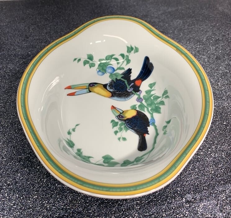 HERMES Paris France TOUCANS Porcelain Oval Vegetable Platter - Bird Themed Bowl