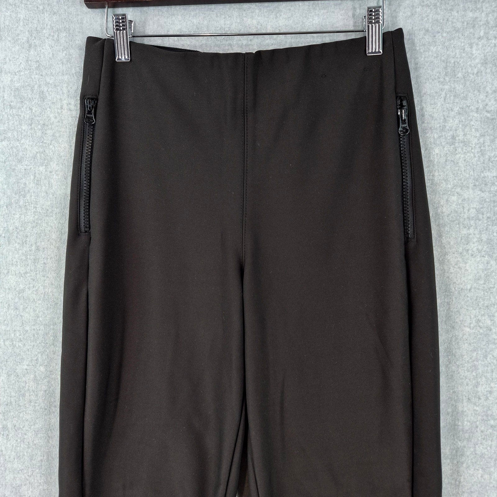 Welcome to Aspen Crossing, offering many styles that reflect the rugged beauty of our American West. Whether your style is Western Bohemian or Quiet Luxury, you’ve come to the right place! HFX Winter Tech Pants Womens Small Black Softshell Fleece Lined Ski Snow Pants Zip Pockets Brand: HFX Item: Womens Winter Tech softshell snow pants / ski pants. Color: Black. Tag size: S / P / CH (womens small). Although the size tag indicates a size s/p, please compare the actual measurements in the photos above with one of your own garments to ensure a correct fit. This garment length is measured from the top of the shoulder to the hem, and chest from underarm to underarm. Materials (per tag): face 90% polyester, 10% spandex; back 95% polyester, 5% spandex; exclusive of decoration. Made in China; RN 94468; CA 63671. Style name on tag: Winter Tech Pant; item number 1438450. Features: Pull-on elastic waistband, stretch softshell exterior with brushed fleece backing for warmth, two front vertical zip pockets, tapered leg silhouette, back seat and side seam paneling for comfort and mobility, and solid black color ideal for skiing, snowboarding, or other cold-weather activewear. Please note: While every effort has been made to reproduce actual colors in photos, variations may occur on your screen.
