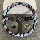 Specifications: 100% Brand New Material: Perforated leather + aluminum frame Color :Same as picute show Diameter: 325mm/13inch Deep Dish: 85mm Lightweight and Durable Alloy Spoke Wrapped with Perforated leather Excellent Hand Stiches Standard 6 Bolt fitment, 70mm PCD Fit most type of aftermarket boss kit Package Content: 1x Steering Wheel 1x Horn Button& cover Horn wire and screws