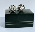 Stylish Brutalist 1970's cufflinks hallmarked sterling silver. Has import marks for Birmingham 1971. By the maker "H.S". Measures 0.8" diameter (face) and weighs 12g. GW 535 Terms and conditionA) I pride myself in keeping my postage and packing costs as close to cost as I can and will where possible will combine postage costs for multiple purchases. I will not enter in to negotiations over postage costs. Each item is weighed and accurate postage displayed in the listing.B) If you pay by paypal then you are covered by their "Buyer Protection" and in line with this I have to provide documented insured cover for purchases over £20.00. I reserve the right to insure items in line with this policy. THIS COST WILL BE PASSED ON TO THE BUYER. C) Compulsory insurance - I reserve the right to send the item insured if the auction price goes over £20.00 to comply with paypals buyer protection policy. This is non negotiable if you pay via paypal. If you wish your item to be sent uninsured you may pay via another method but all risks are accepted by the buyer and only the standard compensation of up to £20.00 can be claimed.D) Lost or damaged items - In the unlikely event of an item received damaged or being lost please email me. I will then make a claim on your behalf against the post office. I can claim only after 25 working days after posting and it can take up to 3 weeks for them to reply to the claim so please be patient. When we are refunded then you will be. No claim can be made for damaged china or glass (post office rules). Successful claims for loss will only reflect the value of the item as the post office will not refund postal charges.E) Overseas buyers are wholly responsible for any customs duty or local charges that may occur within their own country.FEEDBACK I will reply to any feedback given. I want to make sure you are happy so will give feedback when it is received.NON PAYING BIDDERS After 7 days I will send a reminder invoice followed by a "non-paying bidder alert" and a non payer strike against the bidder.REFUNDS I do not claim to be an expert on any subject. I try to describe all my items as accurately as possible. They are however SOLD AS SEEN. Please ask questions if you are unsure of anything BEFORE bidding.RETURNS I sell vintage items. Some might possibly have what I consider "general wear and tear" related to age - slight surface blemishes, tarnishing, very small natural cracks in wood, very slight colour variations. These may not be listed in the description. Anything I feel is damage or a major detraction will be in the listing. If you have any questions please ask them before you bid. After the auction is too late.