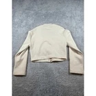 H&M beige bomber-style jacket crafted from a soft, structured jersey fabric. This versatile piece features a collarless neckline with a ribbed trim, snap-button front closure, and two decorative chest flap pockets. The drop-shoulder design and relaxed fit provide a modern, minimalist silhouette, while the fleece-like interior offers added warmth and comfort. Perfect for layering over casual outfits or dressing up for a clean, contemporary look. Keywords: minimalist, scandi style, bomber jacket, neutral aesthetic, collarless jacket, beige jacket, relaxed fit, structured jersey, utility style, capsule wardrobe, hm fashion, modern classic All items from my store are items from my family and my personal collection. Some items have been worn with love, showing them earned flaws. Some hardly used, and few never worn at all with tags still on. Please give them extra life! Much gratitude!