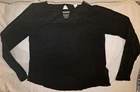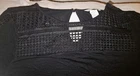 The HM Black Peekaboo Laced Top is a versatile and stylish blouse suitable for various occasions. Featuring a boat neckline and long sleeves, this pullover top is made from 100% viscose shell and 100% polyester lace. The peekaboo lace detail adds a touch of accent to the solid black color, making it perfect for winter, fall, and spring seasons. Easy to care for with machine washable fabric, this blouse also offers a slimming fit with a collarless design and keyhole neck for a chic look. Ideal for workwear or casual outings, this H&M top is a must-have for any woman's wardrobe. Also has an extra button on the tag. MEASUREMENTS: Chest 18" pit-pit = 36" around. Length 23" neck-hem. Shoulders 15 1/2" shoulder-shoulder. If you would like to bundle items for a discount please let us know and we will create a special listing for your items including combined shipping 🚢 to save you more 💰 🤑 💸 💲 🪙 💶 Please see our other listings for more discounted name brand ladies clothing, accessories, lingerie, bras, panties, Totes, fragrance, Bath And beauty products and much more. Thanks for supporting our very small business and have an awesome day 😊