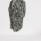 The H&M Blouse in Beige with Black Zebra Print is a stylish and versatile piece suitable for various occasions such as travel, casual outings, workwear, and business meetings. Made from viscose material, this top features a V-neckline, short sleeves with an asymmetrical sleeve type, and a regular fit. The animal print pattern adds a trendy touch to the basic blouse style, making it a fashionable option for women looking to add a statement piece to their wardrobe. Easy to care for with machine washable instructions, this blouse is a practical and chic addition to any closet.