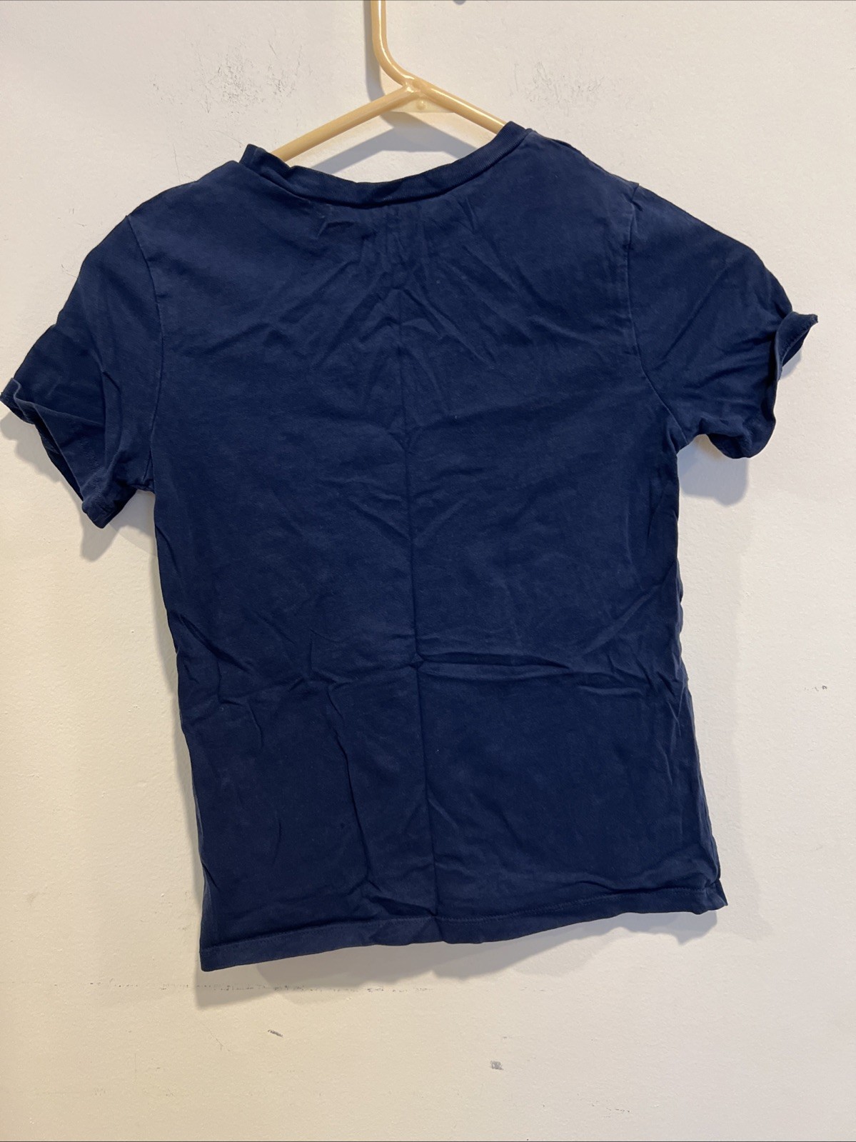 This H&M Boys Navy Blue Cotton Short Sleeve T-shirt in size EUR 134 (US 8/10) is a versatile and stylish addition to any young boy's wardrobe. Made from comfortable cotton material, this pullover t-shirt features a classic round neckline and a regular fit, making it perfect for casual occasions during the summer, fall, and spring seasons. The timeless blue color and basic style of the shirt make it easy to pair with a variety of bottoms for a classic and easy-to-wear look. Easy to care for with machine washable instructions, this shirt is both practical and fashionable for active boys.