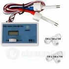 Brand New - HM Digital DM-1 (with two 1/4'' Tees) Inline Dual TDS Monitor *** Check out more HM Digital Products (Click Here) *** Check out HM DM-1A 3/8" Tees and HM DM-1B for 1/2" Tees. Measure the tap water coming in vs. the purified water going out of your system at any time. Use the monitor to determine when the filters need to be changed. Install the meter for your customers so they'll always know how their system is performing. FEATURES Displays TDS levels of the feed water and product water with in & out electrode probes. Highly efficient and accurate due to its advanced microprocessor technology. Auto-Off function conserves battery power. The unit shuts off automatically after 10 minutes of non-use. Dual Range 0-9990 ppm (From 0 - 999 ppm the resolution is 1 ppm. From 1000 to 9990 ppm, the resolution is 10 ppm, indicated by a blinking 'x10' image.) Factory Calibrated: our meters are calibrated with a 342 ppm NaCl solution. Meters can be recalibrated with a mini-screwdriver. Comes equipped with John Guest Quick-Connect T-fittings as shown. Installs quickly and easily. SPECIFICATIONS Range: 0-9990 ppm Accuracy: ±2% Cable Length: 24.5" (including sensor) Fittings: Two 1/2" Tee Power source: 2 x 1.5V button cell batteries (included) Battery life: approx. 1000 hours of continuous use Size: 7.6 x 2 x 4.7 cm (3 x .8 x 1.9 in.) Weight: 79.4 g (2.8 oz.) Check out more HM Digital Products (Click Here)