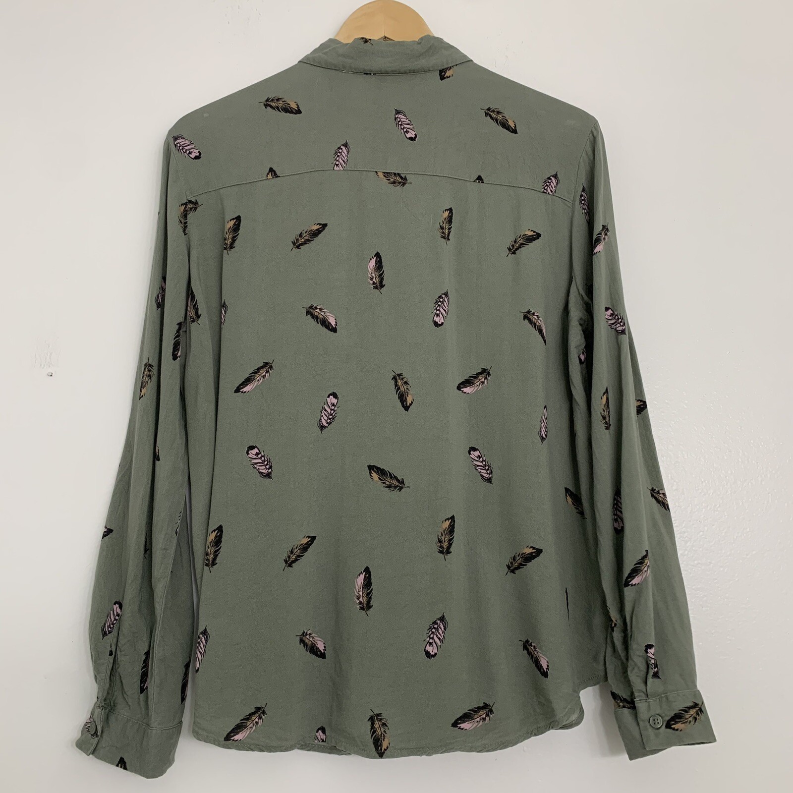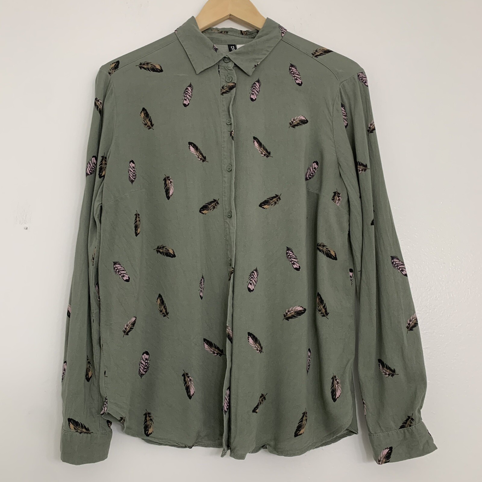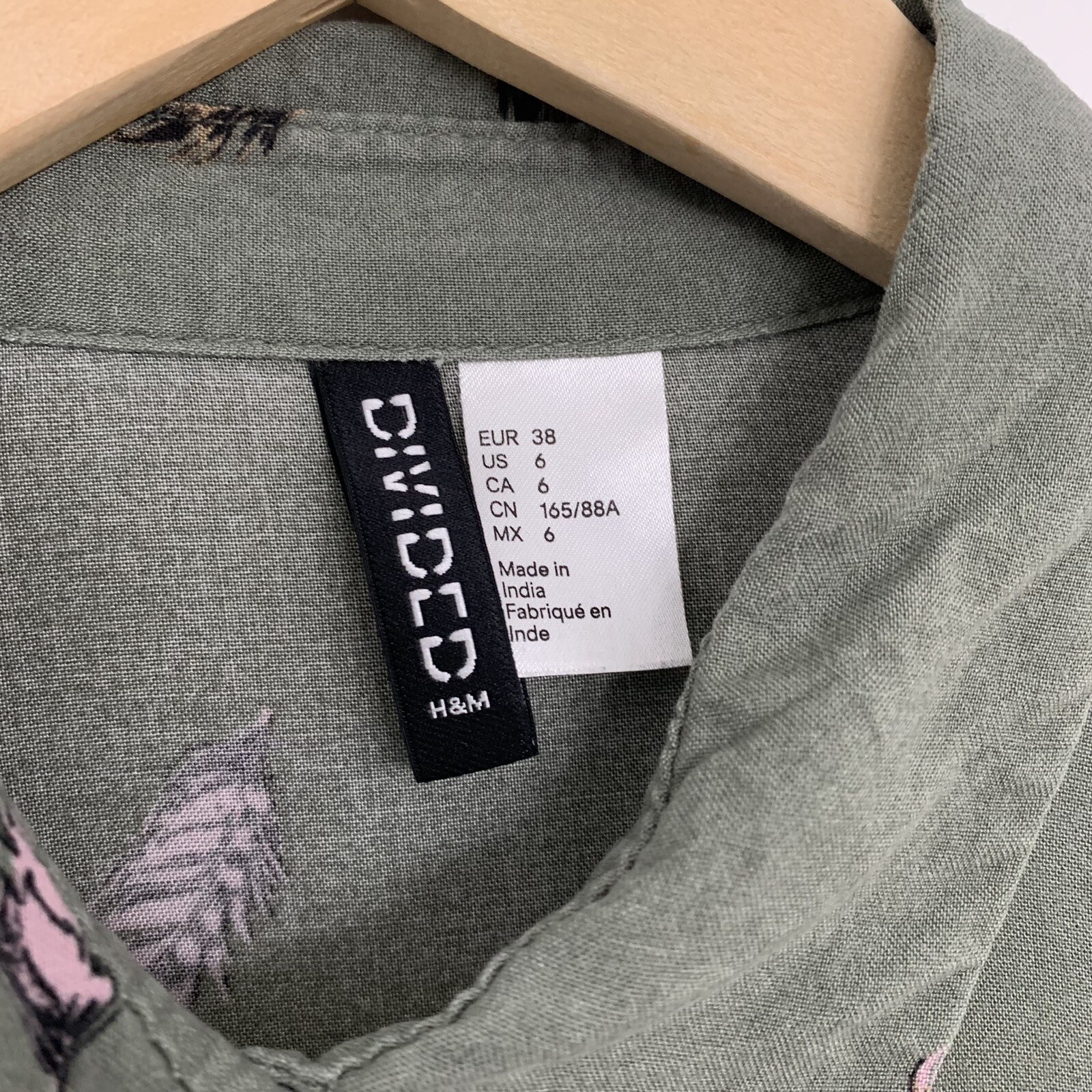 HM Divided Green Viscose Feather Button Front Womens 6 Boho PLEASE NOTE: This item is pre-owned, therefore the actual size may differ from the advertised size. Please look at the measurements before purchasing. If you're not sure about the size, flat lay a similar item of your own and measure that item to compare with our measurements. This definitely helps in deciding if the item is the right size. Return Policy If your item does not fit, I do accept returns within 30 days. Please note, the item must be returned in the exact same condition as it was received. The buyer pays return shipping if the item does not fit. I kindly request that you select "Item does not fit" when returning an item that does not fit. Thank you! Please see pictures for an accurate description of the item and condition