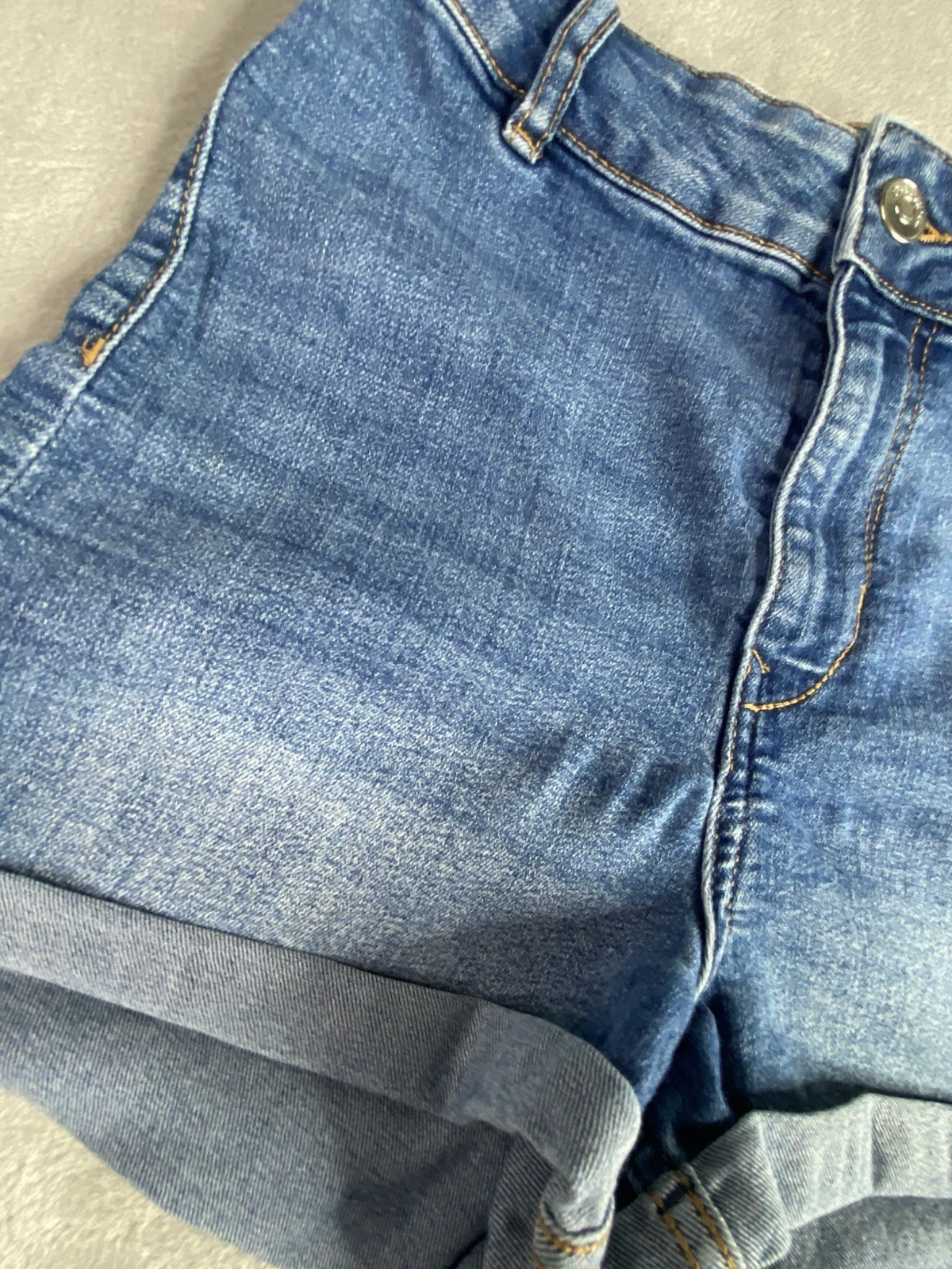 H&M Divided Women’s Cuffed Blue Denim Jean Shorts Size 4 Mid Rise. Condition is Pre-owned - Good. Shipped with USPS Ground Advantage.