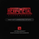 for 2005-2023 FORD F-250 SUPER DUTY 2.5" FRONT LIFT KIT Fits the Following Vehicles 2005-2023 FORD F-250 SUPER DUTY 4WD Bolt-On Lift Kit Solid Aluminium Front Spring Spacers will Never Compress Gain Ground Clearance to Help Traverse Rugged Terrain Durable, Corrosion Resistant Finish Does Not Require Replacement of Factory Parts Preserves Full Articulation of Front Suspension Allows Struts to Retain Full Range of Motion Precise Engineering for a Perfect Fit Helps Preserve Original Ride Quality Easy and Fast Installation with Basic Tools Simple Instructions for Do It Yourself Installment Lifetime Warranty FAQ WHICH FRONT KIT DO I NEED TO LEVEL MY TRUCK? The best way to determine which kit you need to level your truck is to measure your current front and rear ride height from the center of the axle to the top center of the wheel well. Subtract your front and rear measurements from each other, this is the FRONT lift amount required to level the vehicle. HOW DOES THIS LIFT KIT INSTALL ON MY VEHICLE? These Spring Perch Spacers install between your stock spring perch and front axle with the extended hardware in the kit. This increases your vehicle's ride height and retains the factory ride quality without needing to modify your stock suspension components. ARE MY COMPONENTS COATED? Yes, the majority of the components in this kit have been coated or treated to prevent rust, oxidation and other types of corrosion that can be encountered from both daily driving and off-road use. DO I NEED AN ALIGNMENT AFTER INSTALL? A wheel alignment is always recommended after any components of a vehicle's suspension have been altered. This includes disassembly and reassembly. Having a proper wheel alignment will ensure proper vehicle control during on and off-road driving conditions, as well as help maintain even treadwear over your expensive tire investment. I NEED HELP, WHAT CAN I DO? Heavy Metal is a brand that is proud to offer the best customer support possible. Just message us and we've got you covered, whether it's help in selecting the right kit for your application or technical support during your install or any other of your lift and leveling needs. Heavy Metal provides a lifetime warranty on all products to be free from manufacture and material defect for as long as the original purchaser owns the vehicle. Warranty is only valid on the products within the kit and do not extend to the rest of the vehicle or surrounding parts. Lifetime warranty is only valid on the products within the kit and do not extend to the rest of the vehicle or surrounding parts. Lifetime warranty is non-transferable and proof of purchase may be requested upon redemption of warranty privileges. Purchaser will be responsible for all costs of removing the defective part from the vehicle, costs for postage to return the item, and any reinstallation costs. Upon receipt of the item, Heavy Metal will be liable for either repair or replacement of the part at their option along with shipping the repaired or replacement item back to the original purchaser. Items replaced will be matched as similarly to the item returned as best as possible. Heavy Metal reserves the right to make changes to the material, design, and specifications of the replacement item without prior notice. The Lifetime Warranty does not cover cosmetic damages or any product that has been: altered, abused, installed on a different application (other than what it was advertised for), installed incorrectly, or used in any racing/competition applications. If the replacement item is needed before the defective item is shipped back, the purchaser must leave a deposit for the full purchase price which will be refunded once the defective item is returned and deemed warrantable. To make a claim under this warranty, purchaser must message us through eBay at any time. Please note that we respond to any and all messages within 1 full business day.