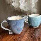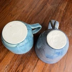 Add a touch of artistry to your morning routine with this exquisite set of two Hand made glazed pottery coffee & tea mugs. Each mug features a unique glazed design in a beautiful blue and teal color, perfect for all occasions and beverage types, whether hot or cold. The mugs are handmade with high-quality clay material and have a small and medium capacity for your convenience. These mugs are an original creation by artist Kim N and are part of the Art Pottery franchise. They are perfect for teens and unisex adults and require hand wash only care instructions. The mugs are shipped now and are perfect for collectors of art glass and dinnerware. I love the beautiful “Victorian style” handle! Please see pictures for exact condition All orders ship within 24 hours after purchase and come clean, washed, and ready to wear! Standard, we ship ground advantage. All order(s) over $100 will require signature confirmation upon delivery, so please arrange accordingly! If you would like to upgrade to a faster service or change anything about the shipping/service please feel free me message us prior to purchase/shipping. Try to be quick, we ship fast. Thank you and have a great day!