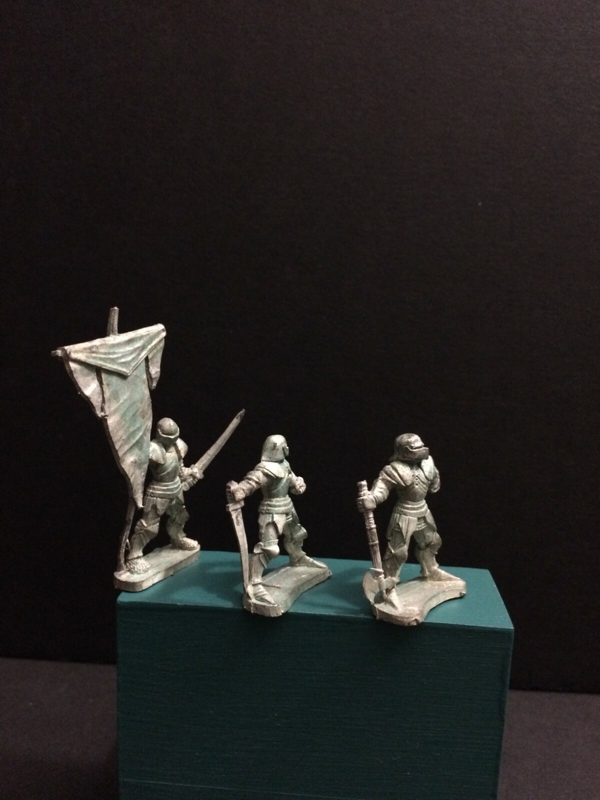 Up for auction are three beautifully detailed vintage hard to find pre slotta solid pewter / metal miniature figurine by Harlequin in excellent condition. Sculpted by Kevin White and they are from the Helsing range HM 1178 (8104) Helsinians heroes . The blue block is 1" to give you an idea of the size of the figurine. They are stamped "Harlequin 96 Kev White" on the bottom. These solid pewter figurines display nicely as home office desk fireplace mantel art . This lovely piece would look great in any pewter dwarf, gnome, fairy, wizard, dragon, fantasy, mythical, advanced dungeons & dragons or LOTR collection or a gift for any fantasy collector . Check out my other auctions for more miniature animals, gold mining prospectors and other figurines from Grenadier, Citadel, Games Workshop, TSR, RAFM, Gallo, Schmid, Hudson, Michael Ricker, Boyd Perry, Lamb, Partha, Rawcliffe, Tom Meier, Hallmark Little Gallery, C.A.T., Spoontiques and others. Please send a message asking for a combined shipping invoice before paying for multiple auctions to save $$$ I acquire my items from local auctions, estate sales etc...I try to describe them to the best of my ability for any damage. Please read descriptions & look at all pictures as they are also part of the description/condition and ask any questions. These vintage items are sold as is. All sales are final and All offers welcomed Please check out my other auctions I always combine shipping when possible just send me a message before paying and I will send you new invoice with combined shipping. Check back often for new listings!