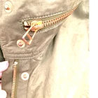L.O.G.G Label of Graded Goods Size US 10 Utility Field Cargo Jacket Army Green Womens Rose Gold Zipper and Accents Draw String Waist Front Zipper and Snap Closure Heavy Weight Armpit to Armpit 21 in Length 25 in Shell 64% Cotton 29% Polyester 7% Spandex Lining Cotton Sleeves Lining Polyester No Hood Excellent Preowned Condition
