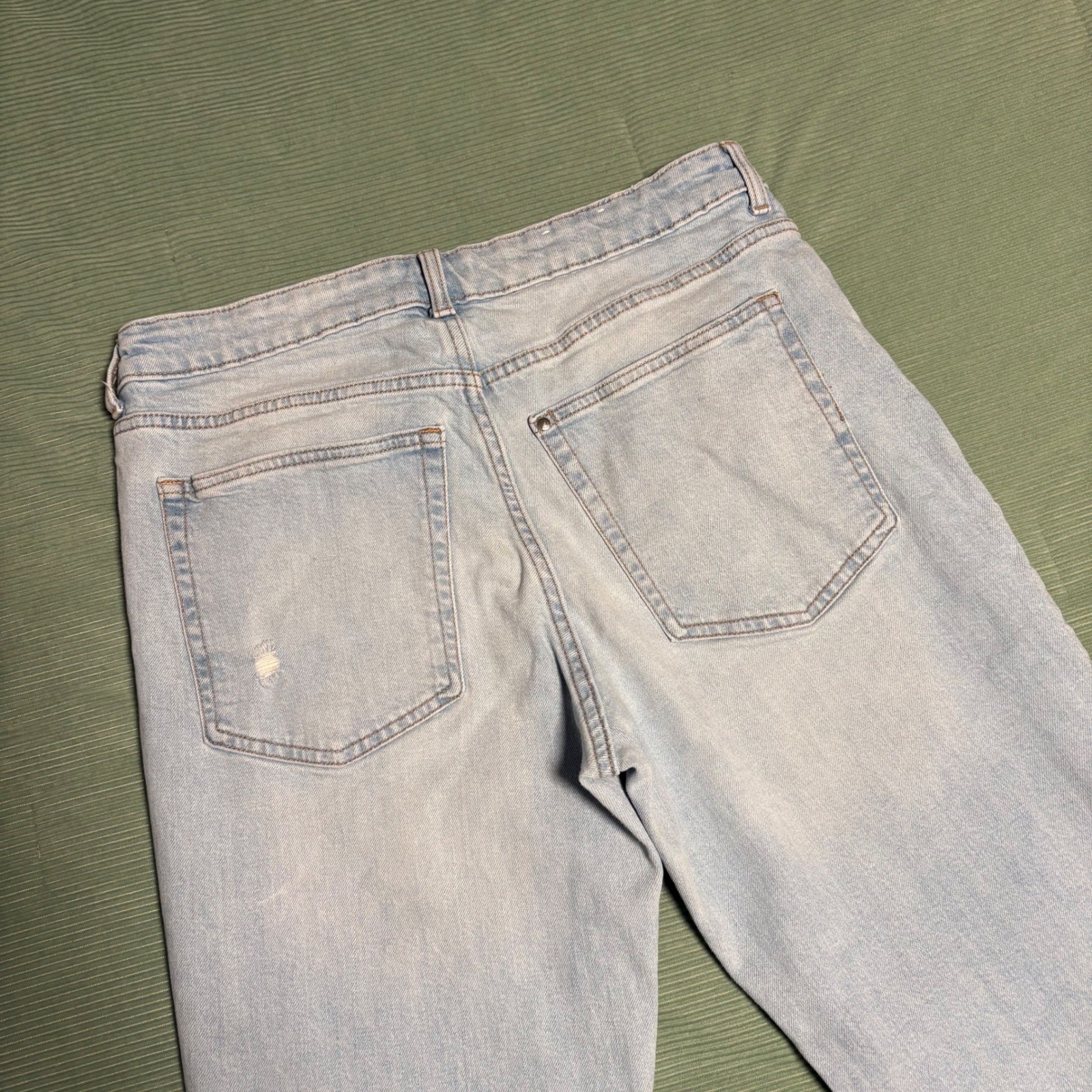 H&M women's light wash denim jeans with distressed details. Classic 5-pocket design with straight leg fit. Soft cotton denim with a casual everyday look. Great pre-owned condition. Style: Straight Department: Women Fabric Wash: Light Waist Size: 31 in Type: Jeans Accents: Ripped Features: Pockets, Stretch Fit: Relaxed Pattern: Solid Rise: Mid (8.5-10.5 in) Fabric Type: Denim Inseam: 29 in Material: Cotton, Spandex Closure: Zip, Button Season: Spring, Summer, Fall, Winter Keywords: HM Jeans, Denim, Distressed Jeans, Light Wash Denim, Straight Leg, Casual, Everyday Wear, Comfortable, Streetwear, Trendy, Relaxed Fit, Cotton Blend *I ship within 1 business day. * Returns accepted within 30 days. Please see measurement photos for accurate measurements. Feel free to contact me with any questions. Thank you.