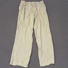 These H&M Linen Blend Straight Retro Trouser Pants in size 12 are perfect for a variety of occasions ranging from casual to formal. The green-grey color and wide-leg style give them a beachy, retro vibe, making them ideal for the summer, fall, and spring seasons. Made from a lightweight and breathable fabric blend of viscose, linen, and cotton, these pants feature an elastic waist and high rise for added comfort and style. With a flat front and easy-care instructions (machine washable), these pants are a versatile addition to any woman's wardrobe.