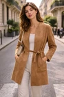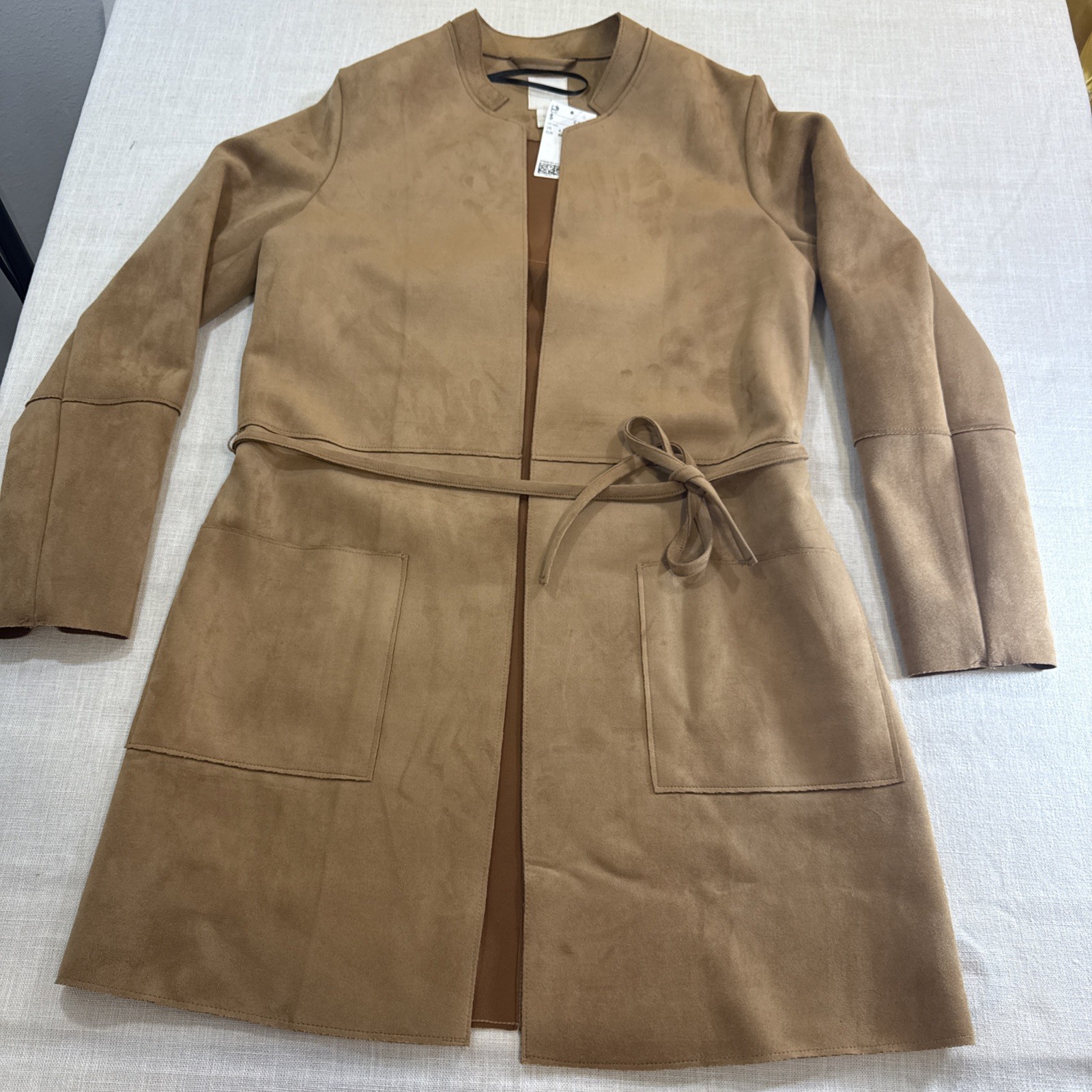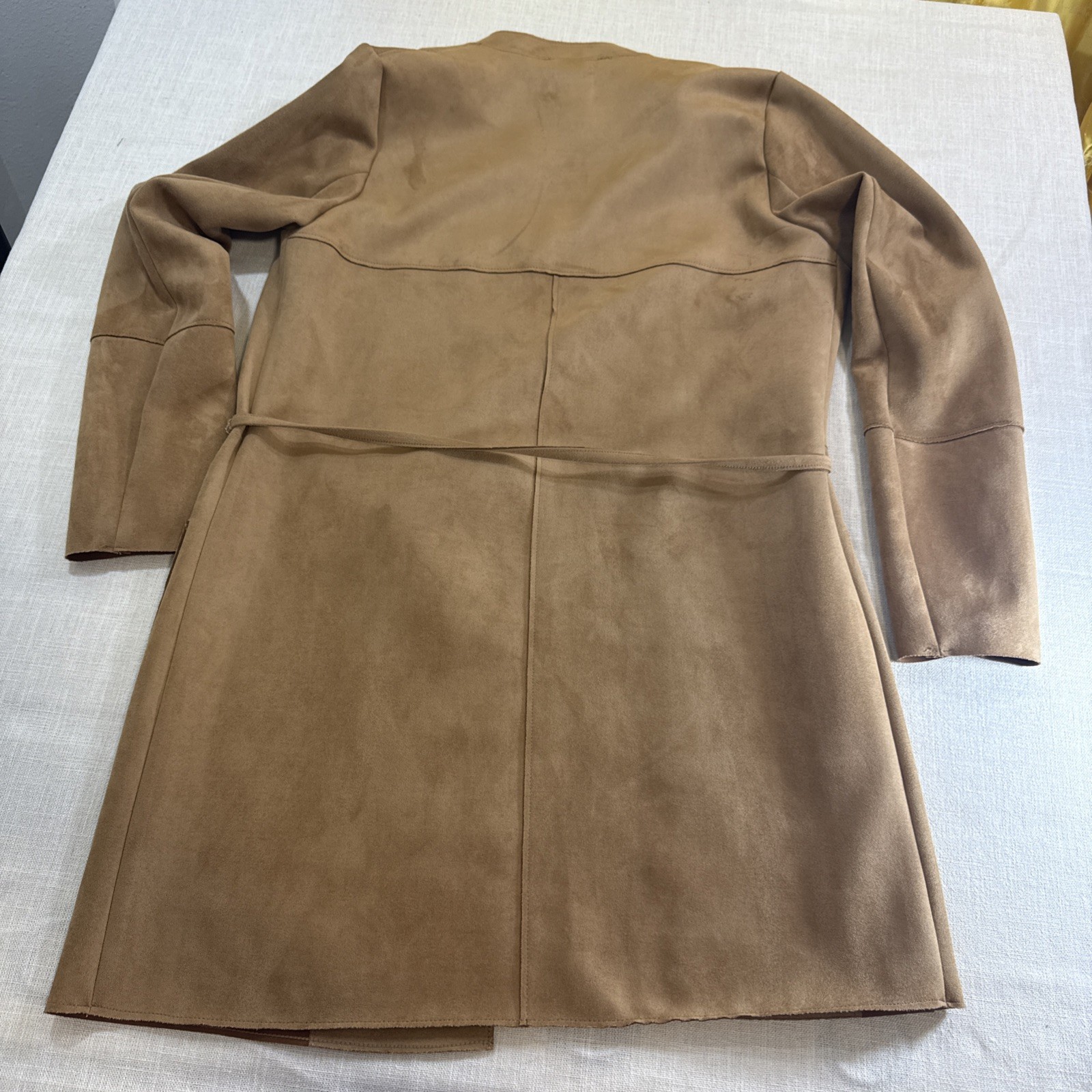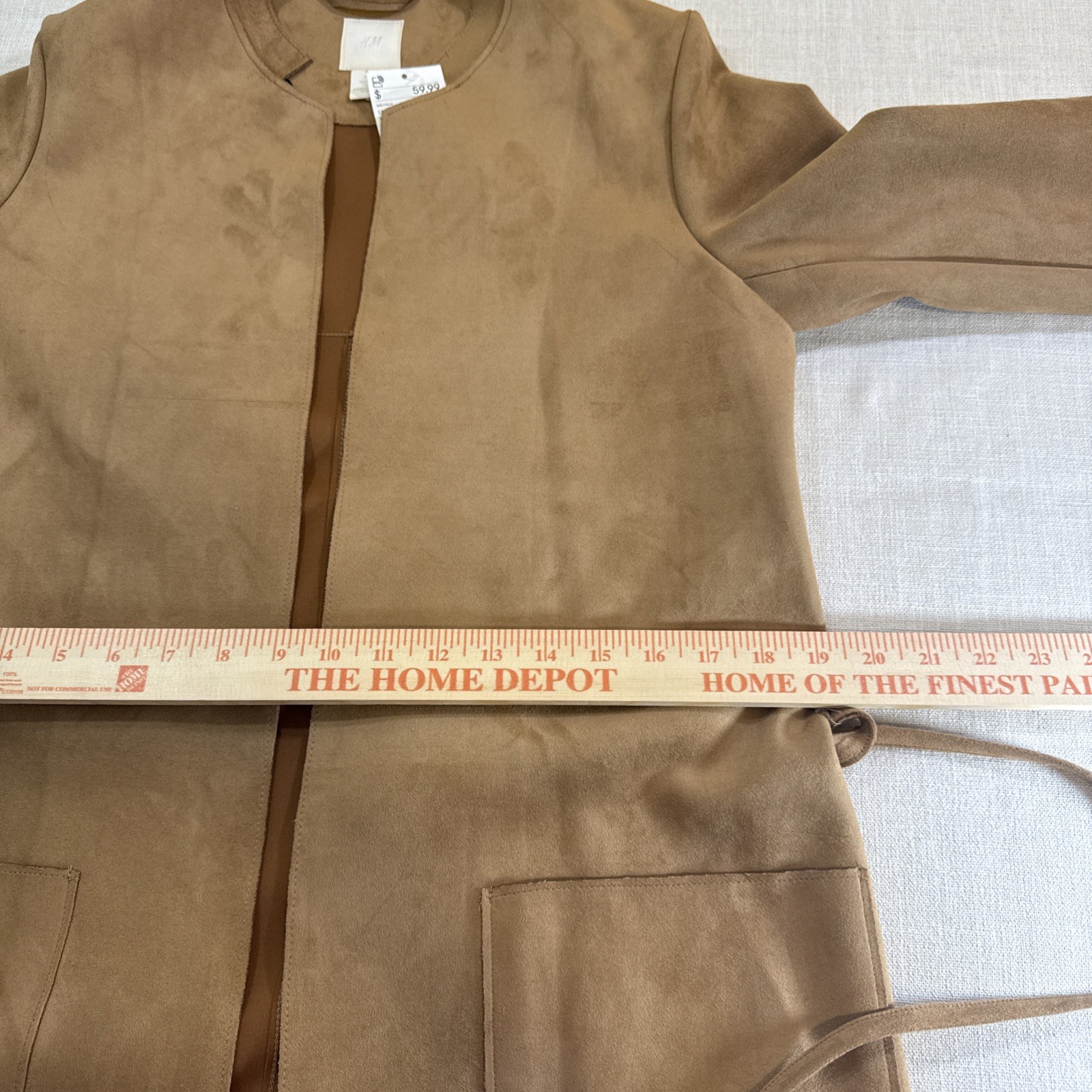 Elevated minimalist H&M faux suede coat in a warm camel tone. Designed with a clean open-front silhouette, subtle round neckline, and adjustable self-tie waist for a flattering fit. Soft suede-look fabric with a smooth drape makes this a perfect layering piece for fall through spring. Features a modern longline cut, front patch pockets, and a sleek back seam for structure. Versatile enough to dress up or down — ideal for office wear, casual chic outfits, or capsule wardrobes. Details: Brand: H&M Size: Women’s US 4 / EU 36 Color: Camel / Tan Style: Open front, tie waist Material: Faux suede (polyester blend with elastane) Length: Knee length / longline Made in China H&M coat faux suede coat camel coat womens tan suede jacket belted coat womens open front coat minimalist coat modern chic outerwear fall winter coat neutral tone coat capsule wardrobe office chic coat longline jacket This digital model shows how the item can be styled. Please note: minor details might differ from the actual piece. Always check the listing photos for exact condition and features.