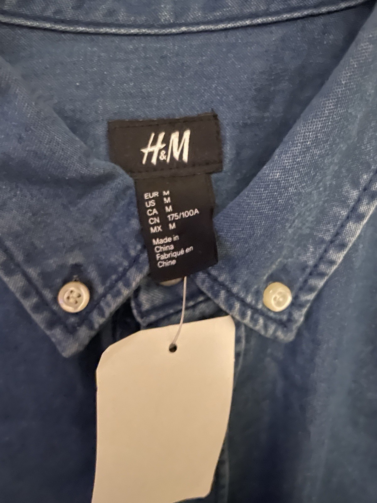 Brand new H&M men’s denim button-up shirt with tags attached. Size Medium. Features a button-down collar, chest pocket, and long sleeves with button cuffs. A versatile piece that works well for casual or smart-casual looks. Brand: H&M Size: Medium (EUR M / US M) Color: Blue Denim Style: Button-up, Long Sleeve Material: Cotton Blend Condition: New with tags (NWT) Great everyday essential with a classic style.