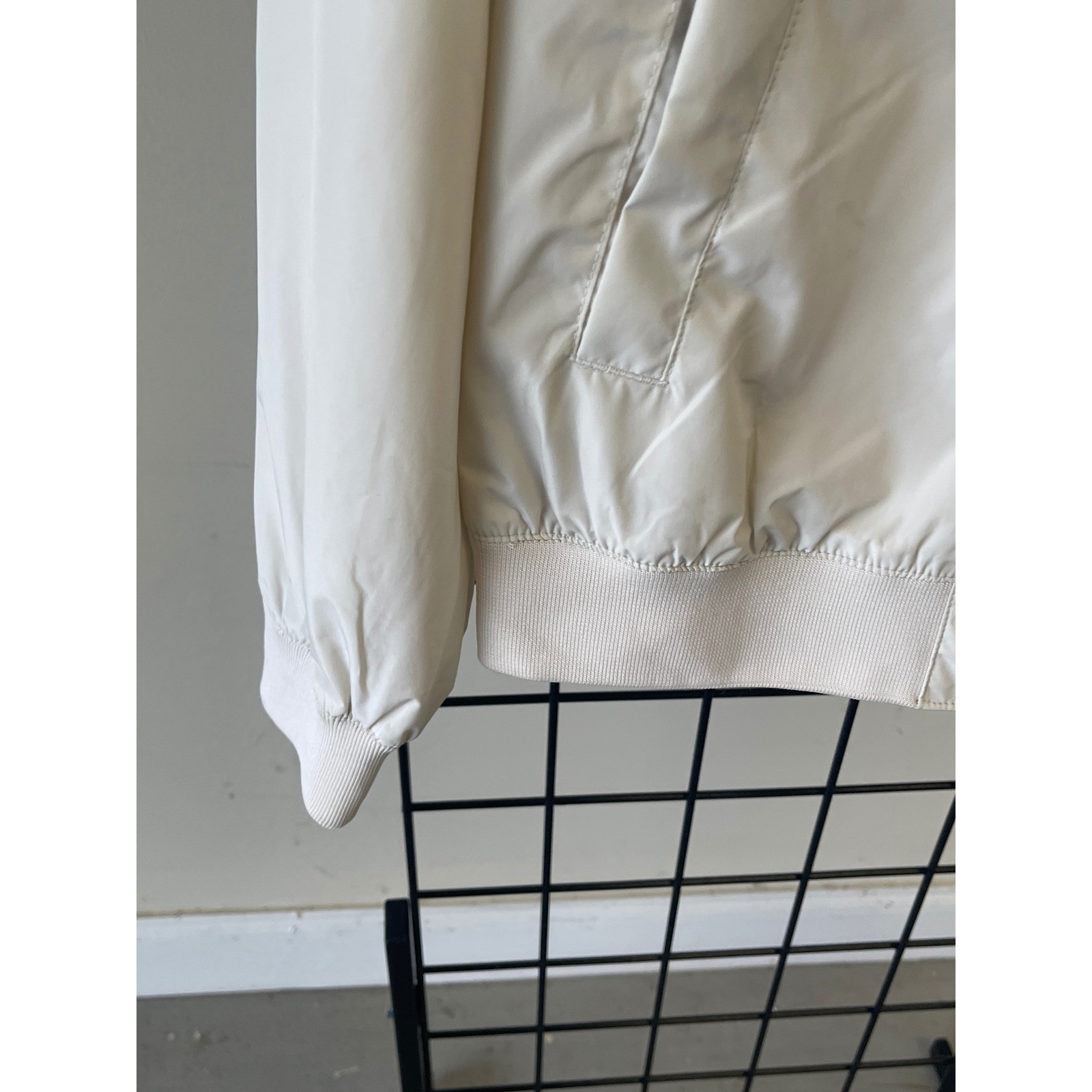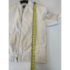 Lightweight bomber jacket from H&M features a sleek, minimalist design in a versatile off-white cream shade. This zip-up outerwear piece includes classic ribbed detailing at the collar, cuffs, and hem for a structured fit. Two functional side pockets provide utility, while the smooth woven fabric offers a clean, contemporary look suitable for transitional weather layering. Brand: H&M Style: Bomber Jacket Color: Cream/Off-White Closure: Full Zip Material: Woven Neckline: Ribbed Baseball Collar Cuffs: Ribbed Hem: Ribbed Pockets: Two Front Slit Pockets Lining: Fully Lined Weight: Lightweight Keywords: Minimalist, Streetwear, Neutral, Transitional, Clean Girl Aesthetic, Scandi Style, Utility, Windbreaker, Casual, Layering, Sporty, Modern
