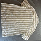 This HM Men's Linen Blend Striped Short Sleeve Button-Up Shirt in beige and white is perfect for summer and spring occasions. Made from a lightweight and breathable cotton-linen blend, this shirt features a classic collared neckline with a button closure. The shirt has a regular fit and is machine washable for easy care. It is ideal for casual wear and travel, with a stylish striped pattern and subtle button accents. Perfect for a relaxed and comfortable look, this shirt exudes a laid-back and California-inspired vibe, making it a versatile addition to any man's wardrobe.