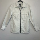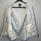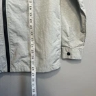H&M windbreaker jacket shacket. Men's size Extra Small. Light gray with a black zipper. Chest pockets and standard side pockets. Good pre-owned condition. Small light spot by the lower right pocket and by the back of the right arm. Please see the photos for more details on the item, condition, and measurements.