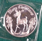 Coins, Currency, and Precious Metals for Collecting and Investment Yes, we combine shipping! See all of our CoinvestmentLand listings , and be sure to click 'Save seller' in the Seller Information box above! Buyer will receive: Highland Mint 1 oz. .999 Fine Silver art bar Merry Christmas - Peace on Earth 1997, featuring Rudolph with his glowing nose, perfect condition in its original protective holder. A great gift! Please see pictures for exact item you will receive and write with any questions you may have. Fast, free First Class shipping. We will gladly combine shipping for multiple lots to reduce your cost. Bid and buy with confidence - we have been selling on Ebay since 1998, and we are committed to accurate grading and customer satisfaction.