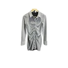 Elevate your fashion game with this stunning H&M metallic silver mini dress. The dress features a solid pattern, long sleeves, and a collared neckline. It is made with stretchy material to ensure maximum comfort. The dress is perfect for any occasion and can be paired with heels or sandals. The S button adds a touch of elegance to the dress and makes it a must-have for any fashionista. The dress is available in a regular size and is suitable for women of all ages. Add this dress to your wardrobe and make a statement wherever you go! in very good condition length 32" chest width 15" All Measurements Are Approximate Please email us with any questions! ** LIKE THE ITEM BUT NOT THE PRICE, REASONABLE OFFERS ACCEPTED