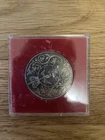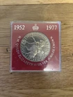 This vintage silver coin commemorates HM Queen Elizabeth II's Silver Jubilee in 1977. The coin features the Queen's effigy on the obverse side and the words “Elizabeth II D.G. Regina” on the reverse side. This collectible coin is a great addition to any collection of British Royalty memorabilia. It was minted in the United Kingdom and is a part of the Crown type coin series. The coin is not signed but is in excellent condition.