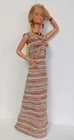 This listing is for the fashion/jewelry only. Doll and shoes are NOT included. All DOLLS4EMMA fashions are completely hand-sewn, to ensure quality stitching and detail, and are created in a non-smoking, pet-free home. =====DESCRIPTION===== This ensemble was designed to fit: 18" SUPERSIZE Fashion Dolls such as the one shown "A TOUCH OF GOLD"- Includes: GOWN, NECKLACE, EARRINGS AND BRACELET GOWN: Full-length gown features a sweetheart neckline and cap sleeves, which can be worn up or down for a sexier look (see photos). It is made with a gorgeous striped fabric in cream, tan, brown, red with gold shimmer accents. It does up in the back with a snap. NECKLACE, EARRINGS AND BRACELET: Matching jewelry set compliments the fashion; made on bendable wire for easy off/on fit. MO RE BEAU TIF UL I N P ERS ON! =====COMBINED SHIPPING===== Additional Fashions/Jewelry ship for $1.00 each Please use shopping cart and request new total. Contact me if you are having a problem with combined shipping, as I can no longer refund over payments. THANK YOU! THANK YOU FOR LOOKING... Please contact seller if you have any questions. All sales are final. Payment is due within 3 days.