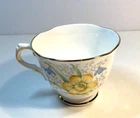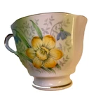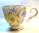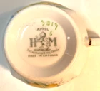 HM Sutherland Fine China Numbered Teacup April Flowers White Multicolor Gold Rim Collectors Made in England Replacements. Footed tea cup, gold rim and gold accent in the handle. Item comes from a home free of smoke, no rips, no dents, no stains, no pets. Measurements Height 2.7" / 7 cms aprox Diameter 3.7" / 8.5 cms aprox Enjoy...