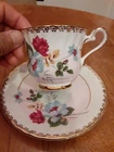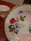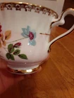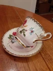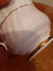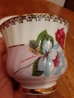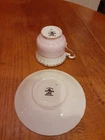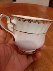 HM Sutherland Pink White Footed Floral Gold Tea Cup Set. 3" Tall 3.25" Diameter Multi Floral Footed Swirl Heavy Gold Trim White and Pink lower Color Block Condition is new. No scratch chip or damages