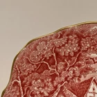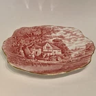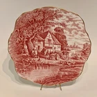 HM Sutherland Rural Scenes Pink Gold Trim Bone China Salad Plate Made in England - Pattern: Rural Scenes (Pink) - Scalloped edges with gold trim - Measures 8.5” (21.6 cm) in diameter - In excellent condition with no chips, cracks or defects - Carefully packaged and shipped within 1 business day