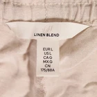 H&M Linen Blend Capri Trousers Oatmeal Beige EUR L W37-42 L3 Elasticated Waist H&M Neutral beige / oatmeal cropped/capri trousers Elasticated waist with a drawstring and pockets Size EUR Large - please see measurements below MEASUREMENTS (Flatlay, approx): -Waist: 18.5-21 inches / 47-53.5 cm -Length: 32 inches / 81 cm -Inner Leg (from crotch): 23 inches / 58.5 cm Most of our items are sent in 100% bio-degradable, recyclable mailing bags, or sometimes re-used packaging, to help the planet. UK shipping is Royal Mail Tracked 48 (unless otherwise stated) so you can keep up with the progress. Any questions, please ask - I normally reply within a few hours. Also, happy to consider offers.