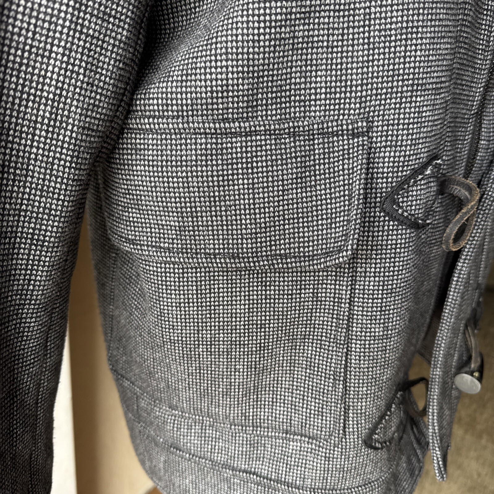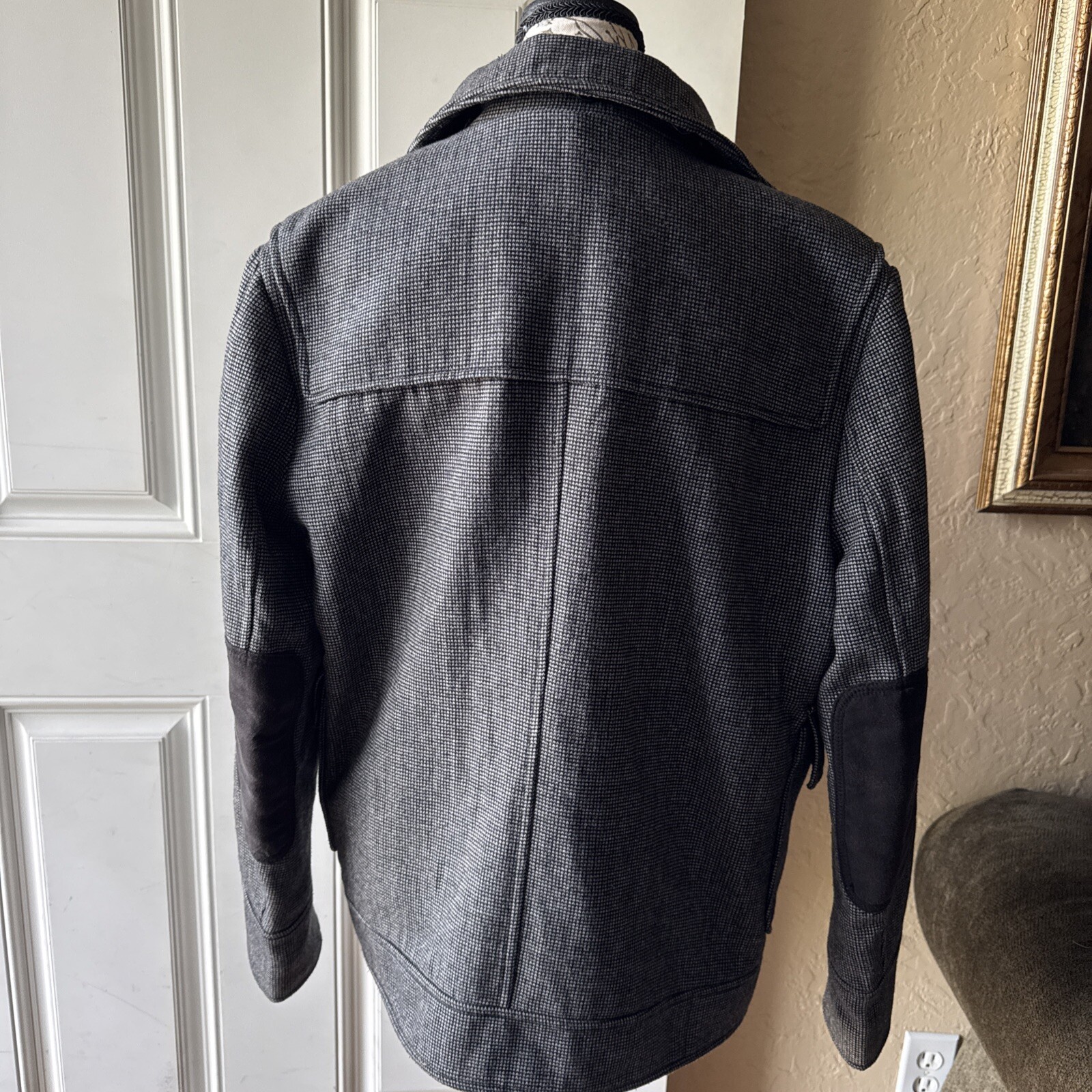 This H&M unisex jacket in size 36R is perfect for any occasion, whether it's a casual day out or a business meeting. The jacket features a black and gray tweed outer shell material with a polyester lining, making it comfortable to wear in any season. It has a full zip closure with buttons for added security, and padded elbows for extra warmth. The jacket also includes several pockets for storage, making it practical and functional. The pea coat style and classic theme add a touch of sophistication to the overall design. Whether you're dressing up or down, this jacket is a versatile addition to any wardrobe. Please contact me if you have any question’s in regard to products for sale. Items are shown as is in photos, but if further photos requested, please message me. I wish you to be able to purchase items with full confidence. Thank you for your support of my small business. I try to always ship items within 24hrs of receiving payment’s. luvista@ebay