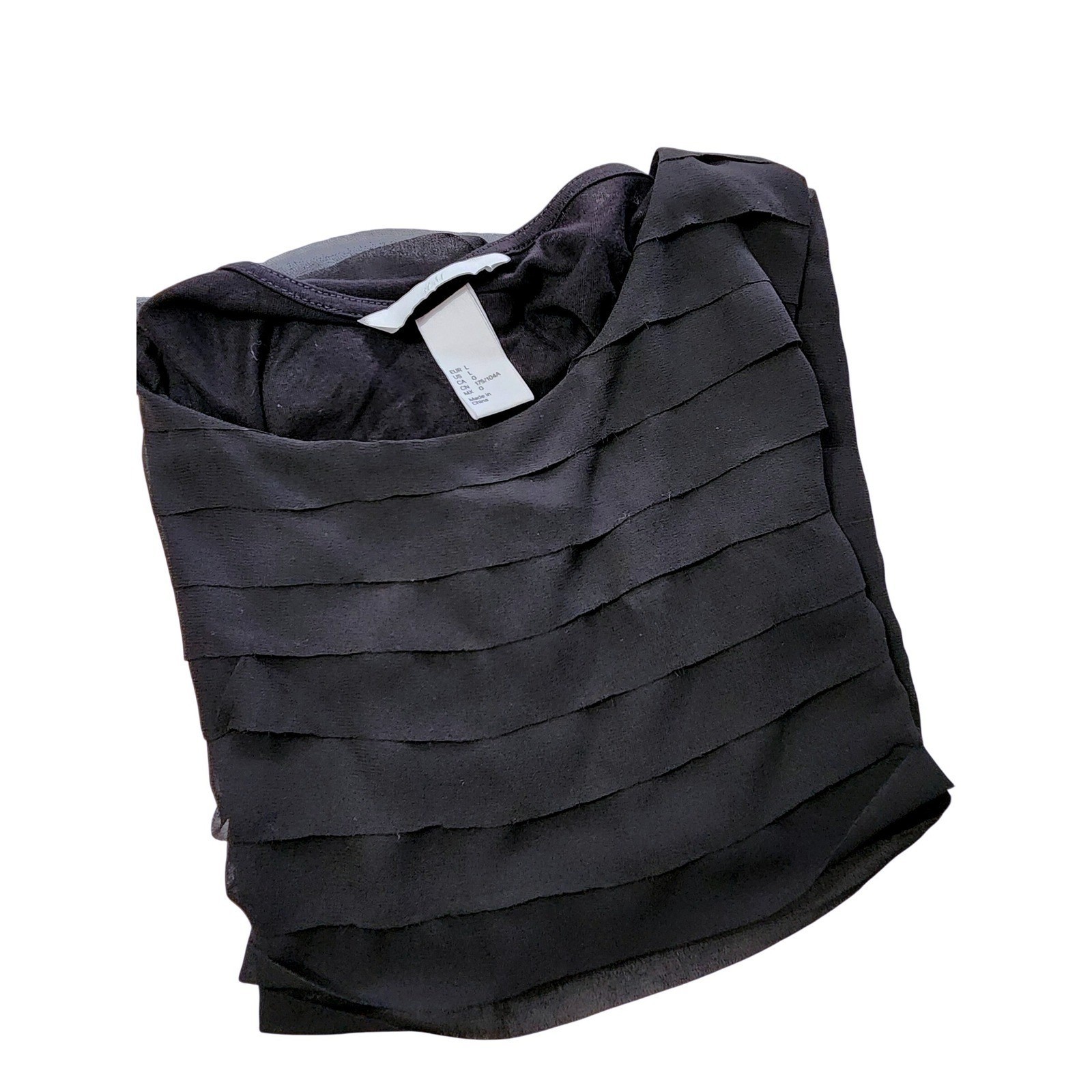 H&M Womens Black Tiered Ruffle Tank Top Sleeveless Scoop Neck Size Large L Measurements: (Approximate) Chest (pit to pit): 20 in Length: 25 in Brand: H&M Color: Black Size: Large Style: Tiered Ruffle Tank Top Sleeve Length: Sleeveless Neckline: Scoop Neck Pattern: Solid with Texture Material: Lightweight Jersey/Mesh Features: Layered raw-edge ruffles on front, solid back Keywords: Minimalist, Goth, Grunge, Edgy, Dark Academia, Layering, Textured, Chic, Casual, Summer, Raw Edge, Tiered, Monochromatic Please compare measurements with other items you own prior to bidding.