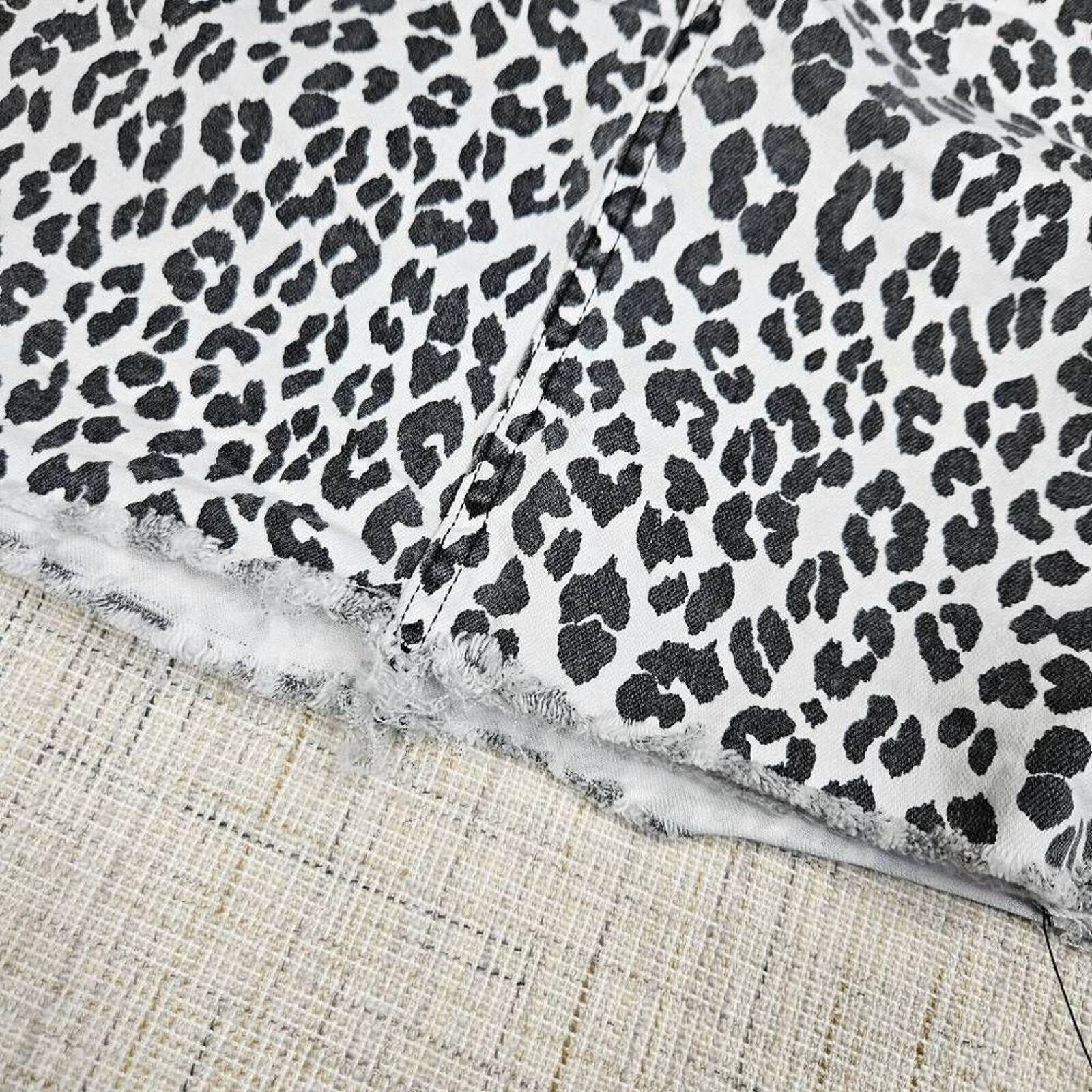 H&M Animal Print Denim Cutoff Skirt Womens Size 2 Zipper Button Closure High Waisted Mini Skirt Black and white animal print Excellent Pre-Owned Condition