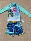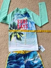 HM and Tommy Bahama Boys 2-Piece Swim Set (UPF 50 Shirt + Trunks) Size 7 NWOT Note: There are scratches on the right arm of the shirt (see arrow in photo). Brand: HM (H&M) and Tommy Bahama Set Includes: 1 pair of trunks + 1 UPF 50 shirt Size: 7 (perfect for younger kids) Features: UPF 50 protection: Helps shield from harmful UV rays Comfortable fit: Soft material perfect for swimming and beach days Stylish design: Vibrant colors and patterns, combining the best of both brands
