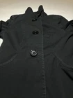 H&M classic look black button down over coat size US 10 / EUR 40 pinstripe lining 2 outer, open pockets plus a hidden, zip closure, breast pocket! warm and roomy! shell 98% cotton / 2% spandex lining 100% polyester made in china machine wash warm only non chlorine bleach when needed line dry or dry clean lightly used but wholly loved!-- Please see photos for measurements and condition details. Feel free to ask any questions or for more pictures if needed! **be sure to check out my other clothing listings for similar styles and sizes! pre owned items may show normal signs of use-- if see any stains, rips, etc., I will do my best to provide photos. do not hesitate to ask for more information if needed and feel free to combine orders to save on shipping!