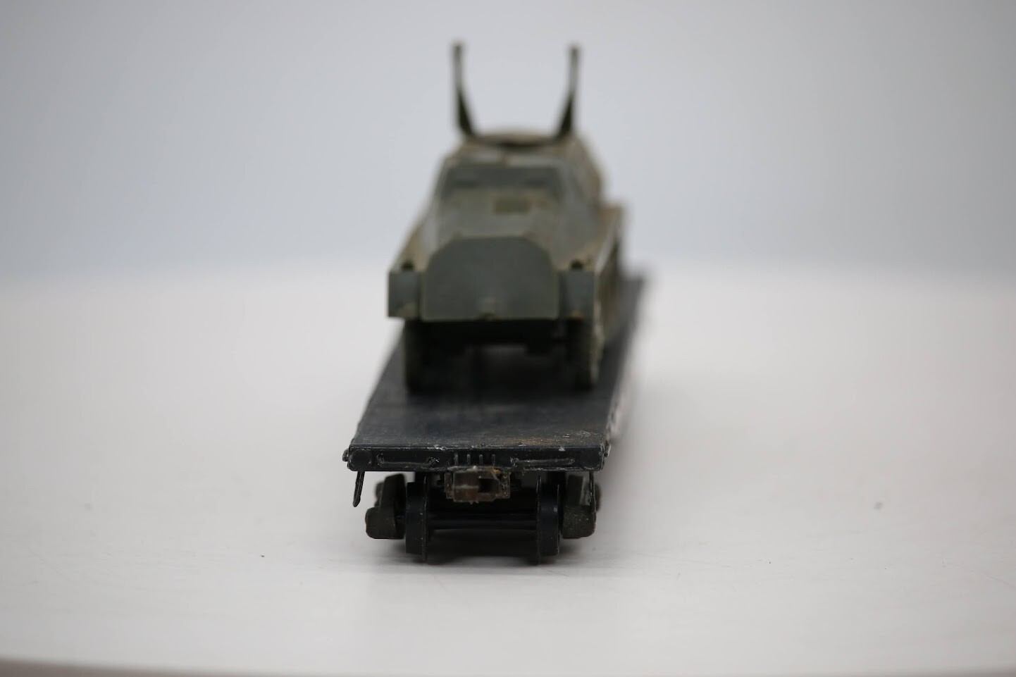 HO scale Assembled wooden Boston & Maine #33616 FLATBED Car w/ Plastic Army Load SKU#004424 PLEASE see photos for detailed condition!! There may be pieces that are missing or broken including, but not limited too, couplers, brake wheels, steps, ladders, railings, etc. May need detailed cleaning. PLEASE LOOK AT THE PHOTOS CAREFULLY BEFORE PURCHASING!! If you are purchasing more than one item from us and would like combined shipping, PLEASE request an adjusted invoice from us while still in the cart and BEFORE paying. eBay does not usually calculate combined shipping accurately and you might get overcharged. Please be aware that when we photograph items, we use lighting that will show the details well. Although we try to present the product as accurately as possible, the lighting may affect the overall look of the item by appearing lighter/darker or possibly a different hue than the actual item. Depending on the type of lighting you have in your home, there may be some differences between the photos and the actual item. If this is a concern of yours, please feel free to request additional photos made in natural lighting or ask for a more detailed description of the item PRIOR TO PURCHASE! PLEASE NOTE: We greatly appreciate your interest in our item for sale. We look forward to a pleasant, quick and satisfying transaction for everybody, so please note the following information before bidding. Thank you! ITEM DESCRIPTIONS: * We will try to describe items well and provide plenty of photos. Please review these carefully before bidding or purchasing. * Only the items pictured and described are what you will receive when purchased. * We will occasionally offer an item clearly marked "AS-IS". This means that we are not sure if it works because we are unable to test it for whatever reason. We will offer these at a discounted price than a similar "working" item. It is possible that these items will work fine, but it also is possible that these items are more useful for their parts. Please only bid on or purchase these items if you are well aware of this, as we will only provide refunds of actual item price (no shipping cost refunds) for these items. * If you have any questions that aren't addressed by the descriptions or photos, please feel free to ask before you bid. SHIPPING: * We usually do not offer shipping to international addresses, but ARE WILLING TO TAKE CONSIDERATIONS. * We try to pack items as carefully as possible, but damage may occur during shipping. If you receive an item that was damaged in shipping, please contact us and we will work with you to resolve the problem. * We will combine shipping costs for all items the same buyer purchases from us within 2 days. Please wait to pay for items until you're done shopping with us. Please contact us if you're expecting to buy more items from us, or to have us adjust the shipping costs. * We will usually ship items out within 24 hours of payment being received Sunday through Friday at noon. We will notify the buyer if there will be a delay in shipping for some reason. Please allow additional time for holidays and weekends when the post office is closed. If payment is received after noon (EST) on Friday, the item might not be shipped until the following Monday. * We do try to recycle shipping materials as much as possible. RETURNS: We abide by eBay's Money Back Guarantee. We definitely want our customers to be happy with their purchase! You may return an item within 30 days of receiving it with the following guidelines: * If the item is defective or damaged (unless we clearly marked the listing "AS-IS"), the buyer will receive a full refund after the buyer returns it and it is received by us. Customers who falsely claim their item is defective, damaged, or not as described in order to receive a full refund and free return shipping will be permanently blocked from making future purchases from us. * If the item is as described (including "AS-IS" items) and the buyer decides for any other reason than defective/damaged to return it, only the actual price of the item will be refunded once it has been returned and it is received by us. The buyer will be asked to pay all original and return shipping charges. This includes all reasons other than defective/damaged, including wrong size, wrong type, changed mind, etc. All "AS-IS" items will fall into this category of return. Please make sure the item is what you want before purchasing it. * Please contact us before initiating a refund request. FEEDBACK: We always leave feedback at the end of transaction. We consider the transaction to be over when we receive feedback from the buyer confirming the item arrived satisfactorily. If you are unsatisfied with your purchase please contact us before leaving neutral or negative feedback. WE APPRECIATE POSITIVE FEEDBACK IF YOU ARE SATISFIED WITH YOUR PURCHASE! THANK YOU FOR YOUR INTEREST IN THIS ITEM!